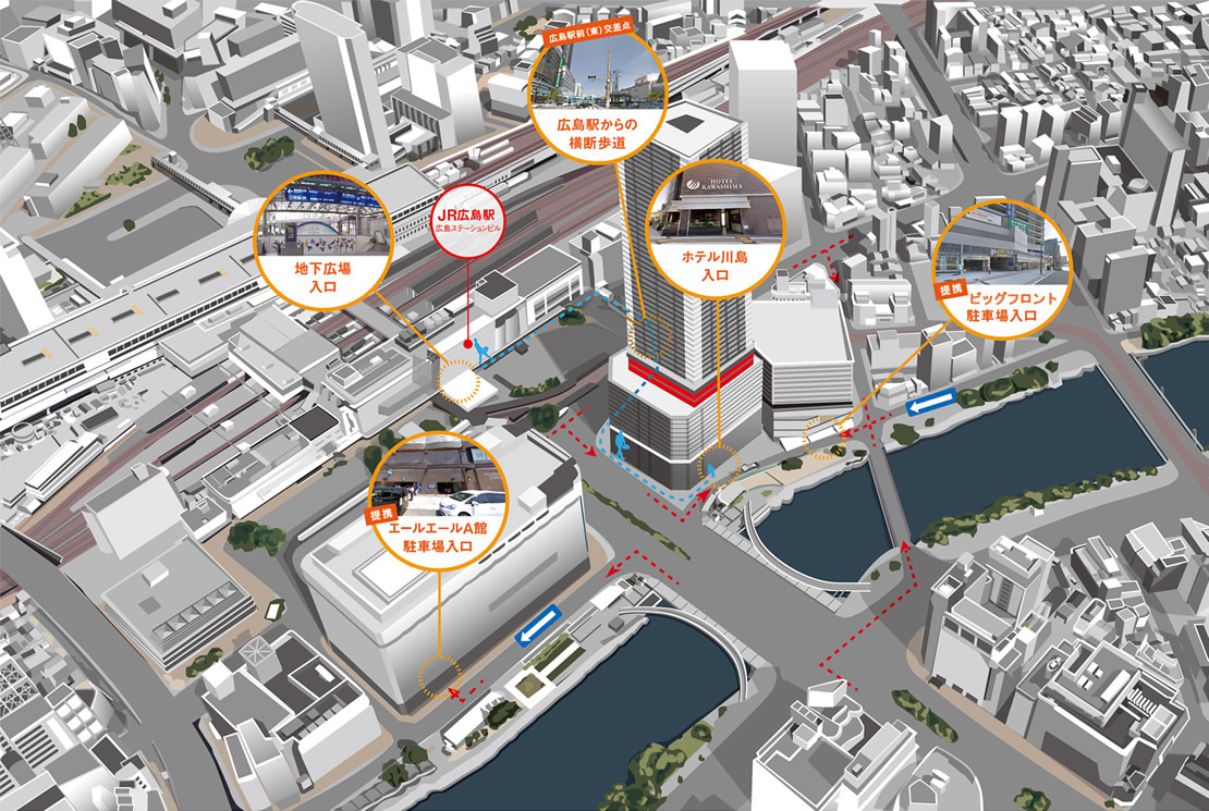 上記時間帯にご来館の際は、ご不便をお掛けいたしますが必ず「広島駅南口地下道」からご来館ください。