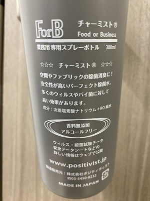 ・除菌消臭剤チャーミスト(次亜塩素酸ナトリウム)を噴霧器「Ultra-CE」を使用しお部屋全体に噴霧